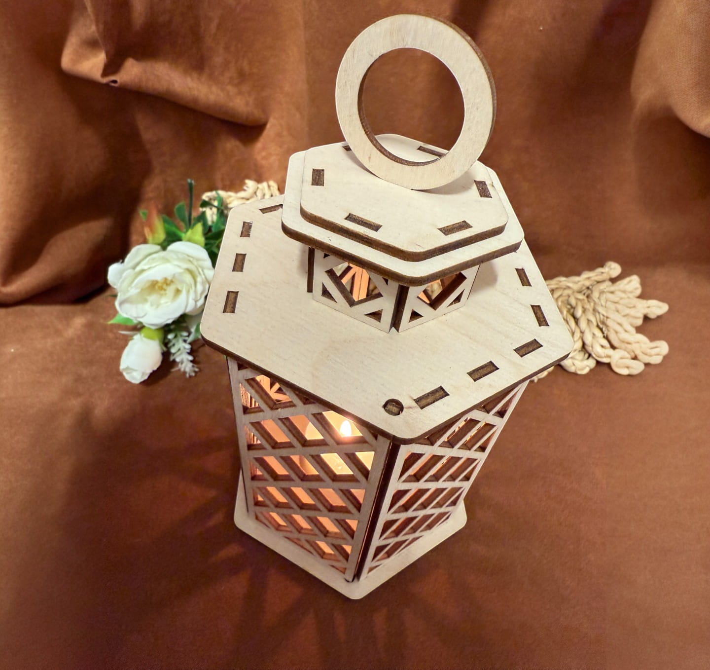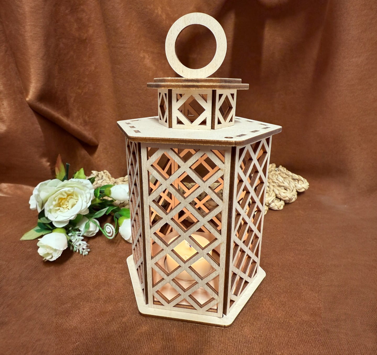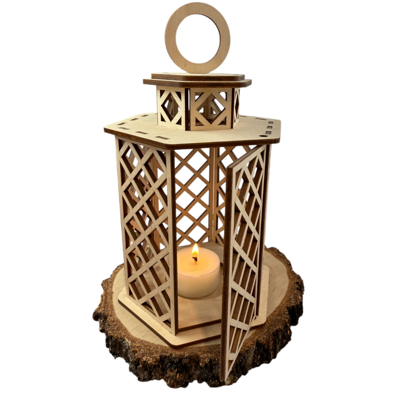 Ażurowy drewniany lampion świecznik