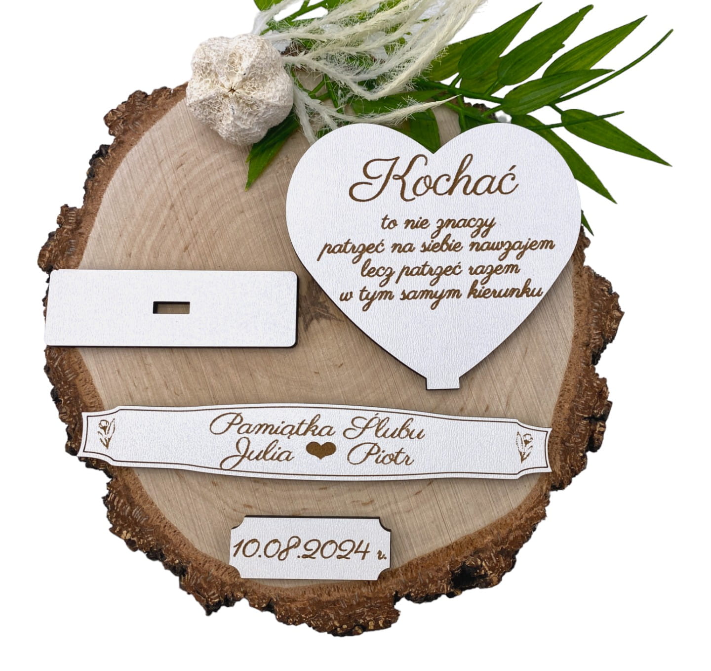 Serduszko stojące z tabliczkami dekor drewniany