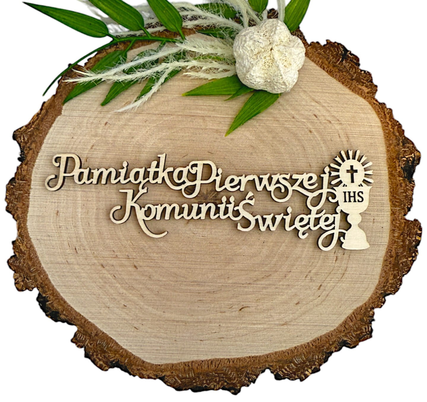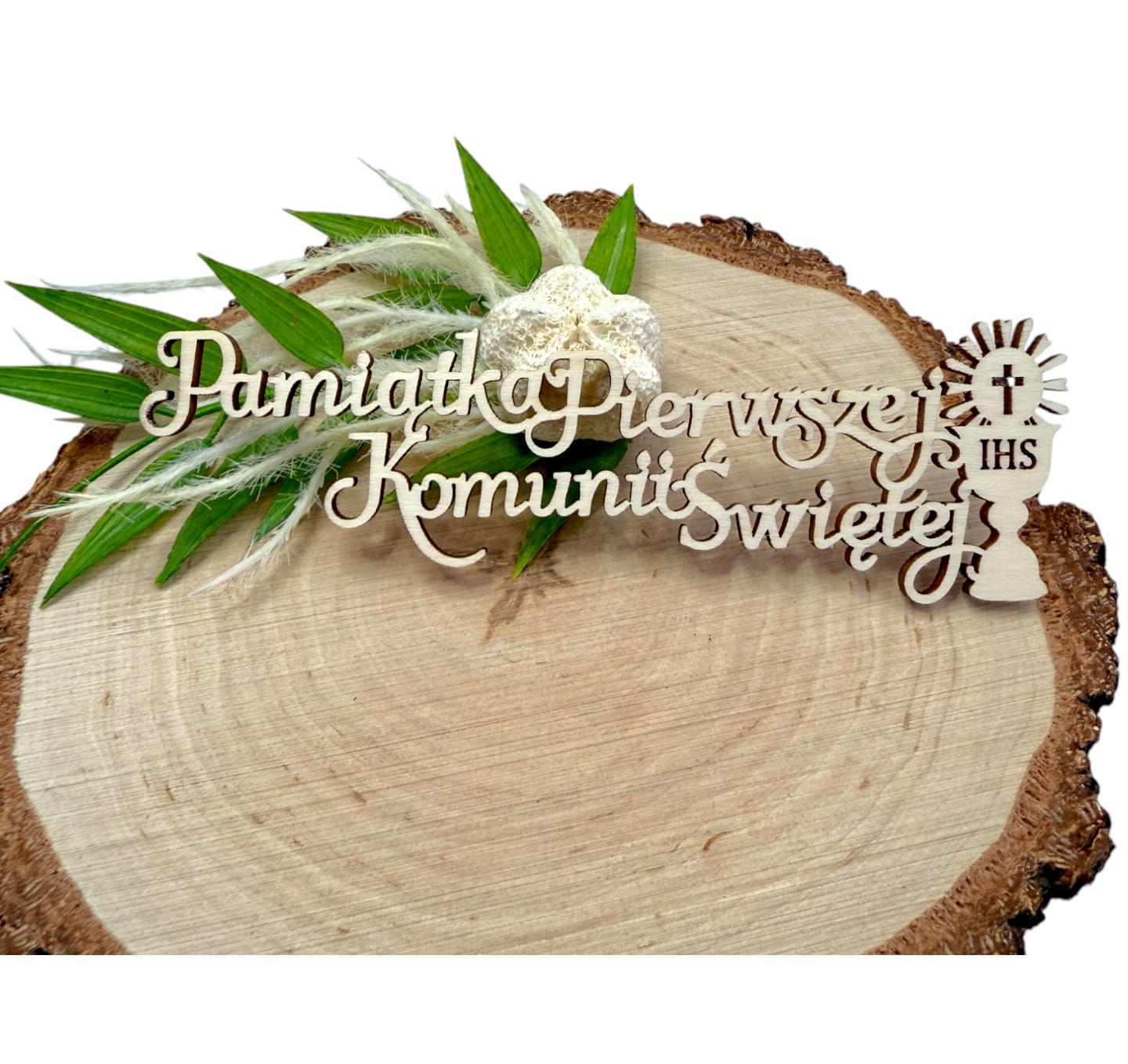 Napis Pamiątka Pierwszej Komunii Świętej KIELICH IHS