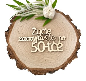 Napis Życie zaczyna się Po 50 tce 5x10 cm