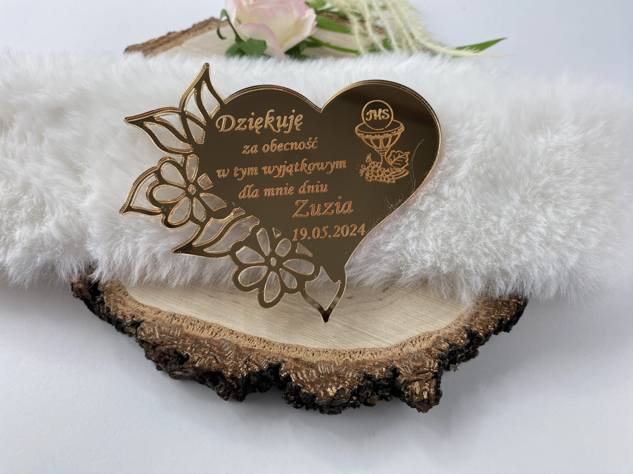 Podziękowanie dla gości – serduszko z lustrzanej plex.