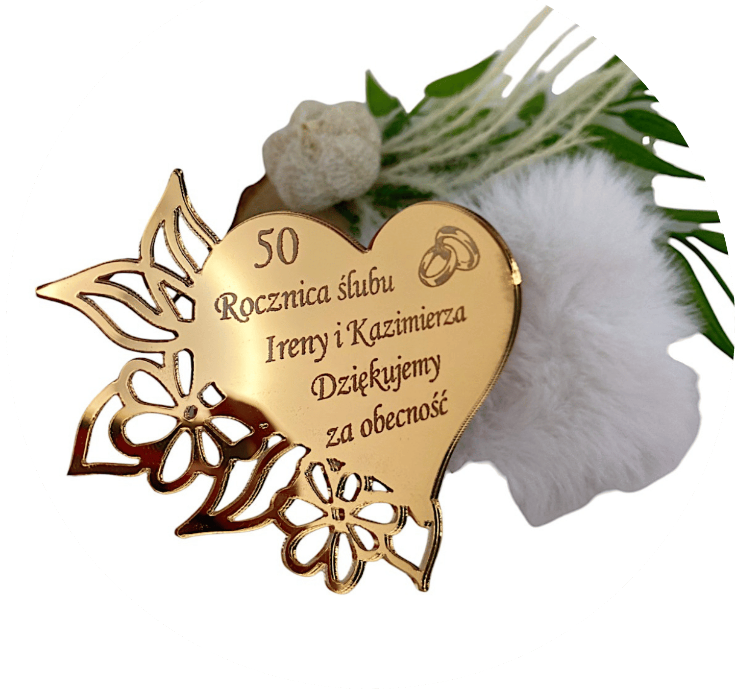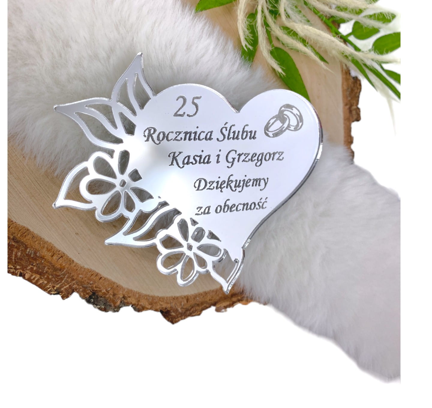 Podziękowanie dla gości – serduszko z lustrzanej plex.