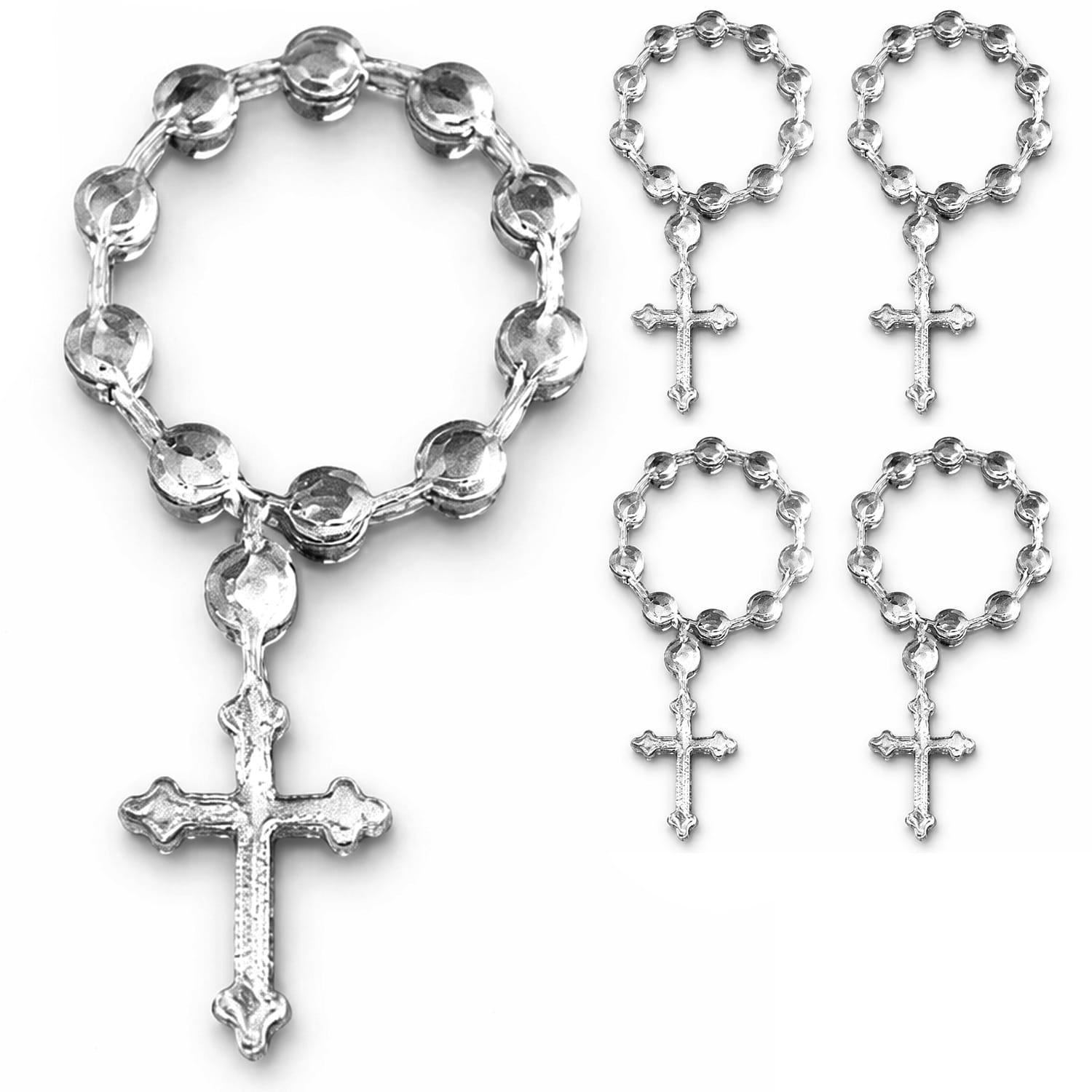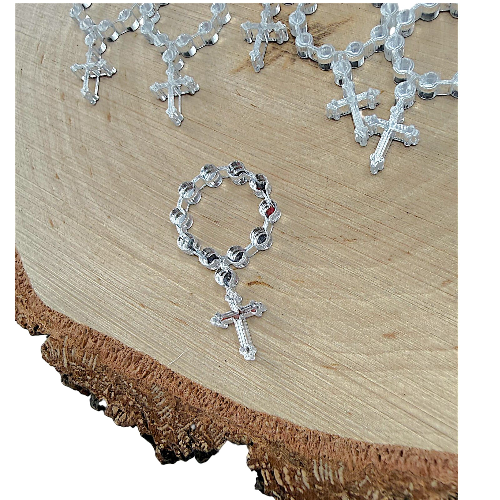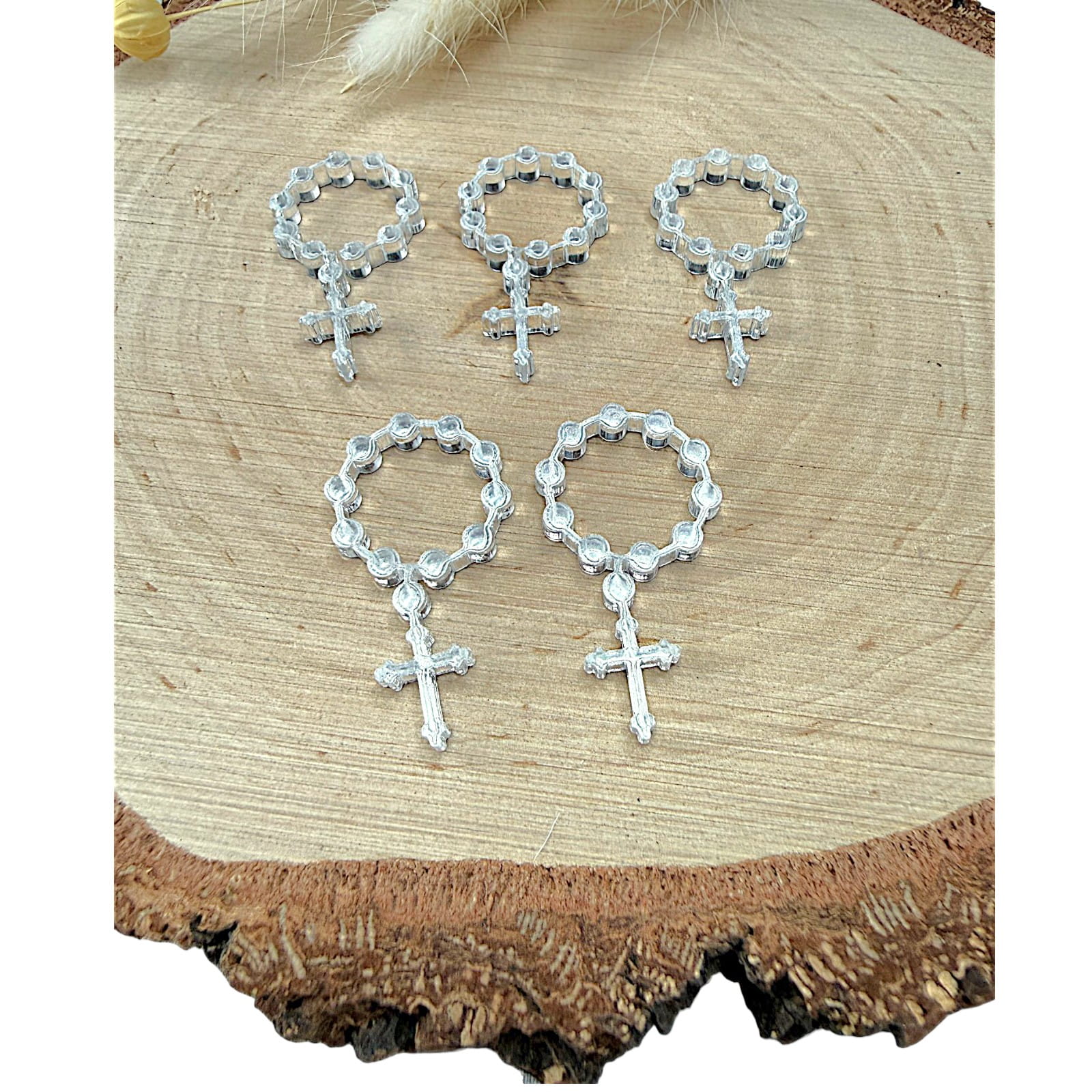 Różaniec z krzyżykiem – plexi lustrzana 3 x 1,5 cm komplet 5 szt