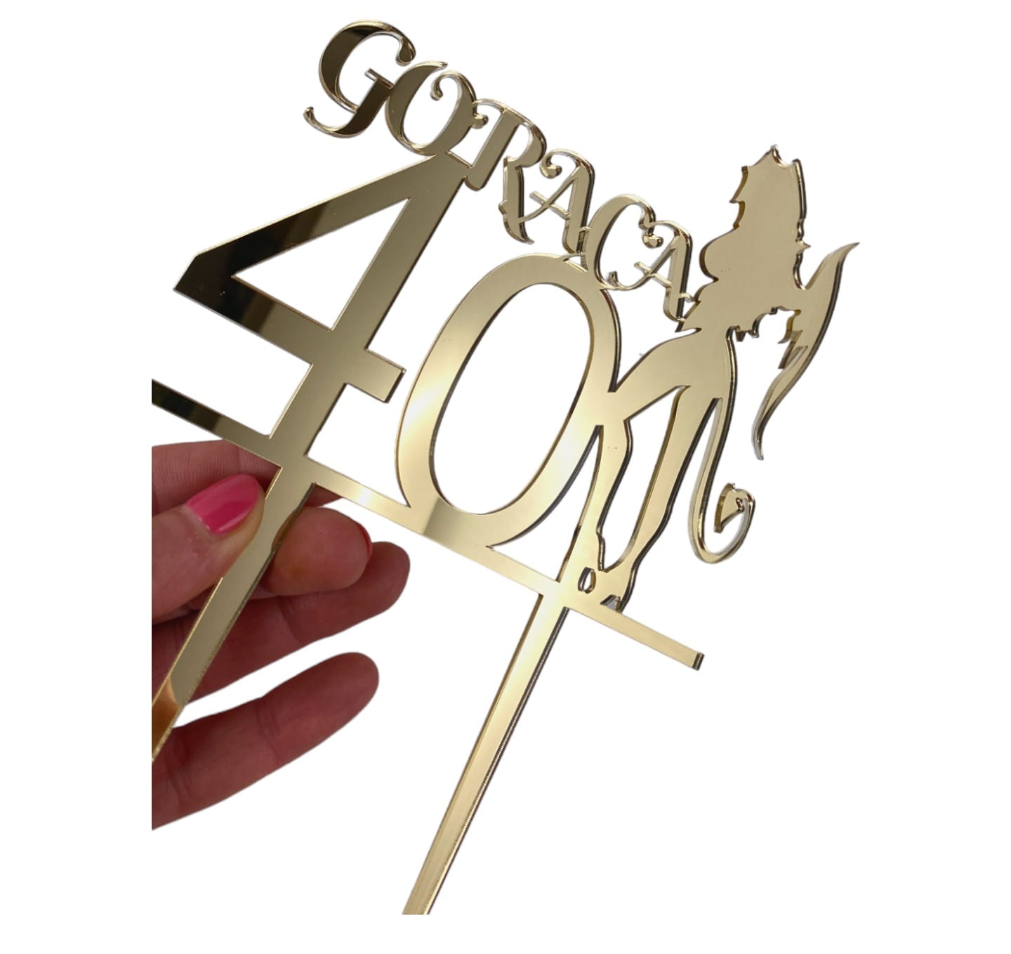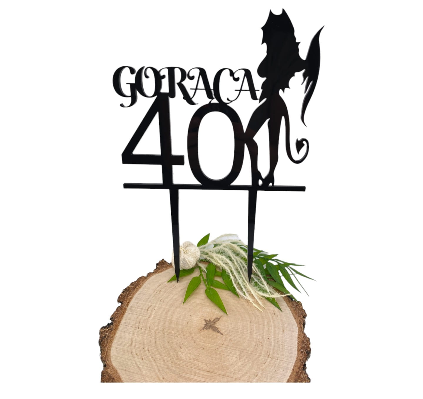 Topper plexi „Gorąca 30, 40, 50, ” z diablicą to dekoracja, która doda Twojemu tortowi ognia i sprawi, że nikt nie przejdzie obok niego obojętnie.