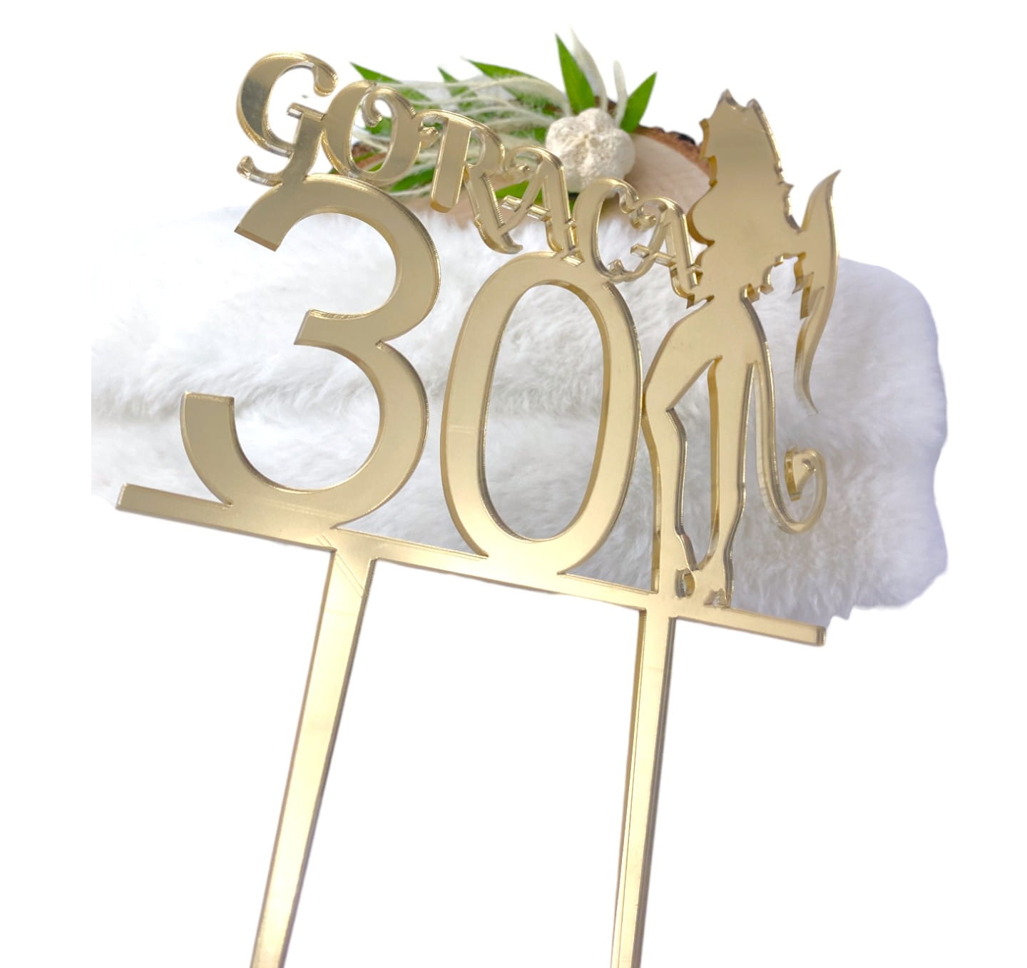 Złote, srebrne, różowe lustro czy klasyczny czarny połysk – wybierz kolor, który najlepiej pasuje do charakteru imprezy. Dzięki solidnej plexi i precyzyjnemu cięciu laserowemu topper wygląda elegancko i zabawnie zarazem.