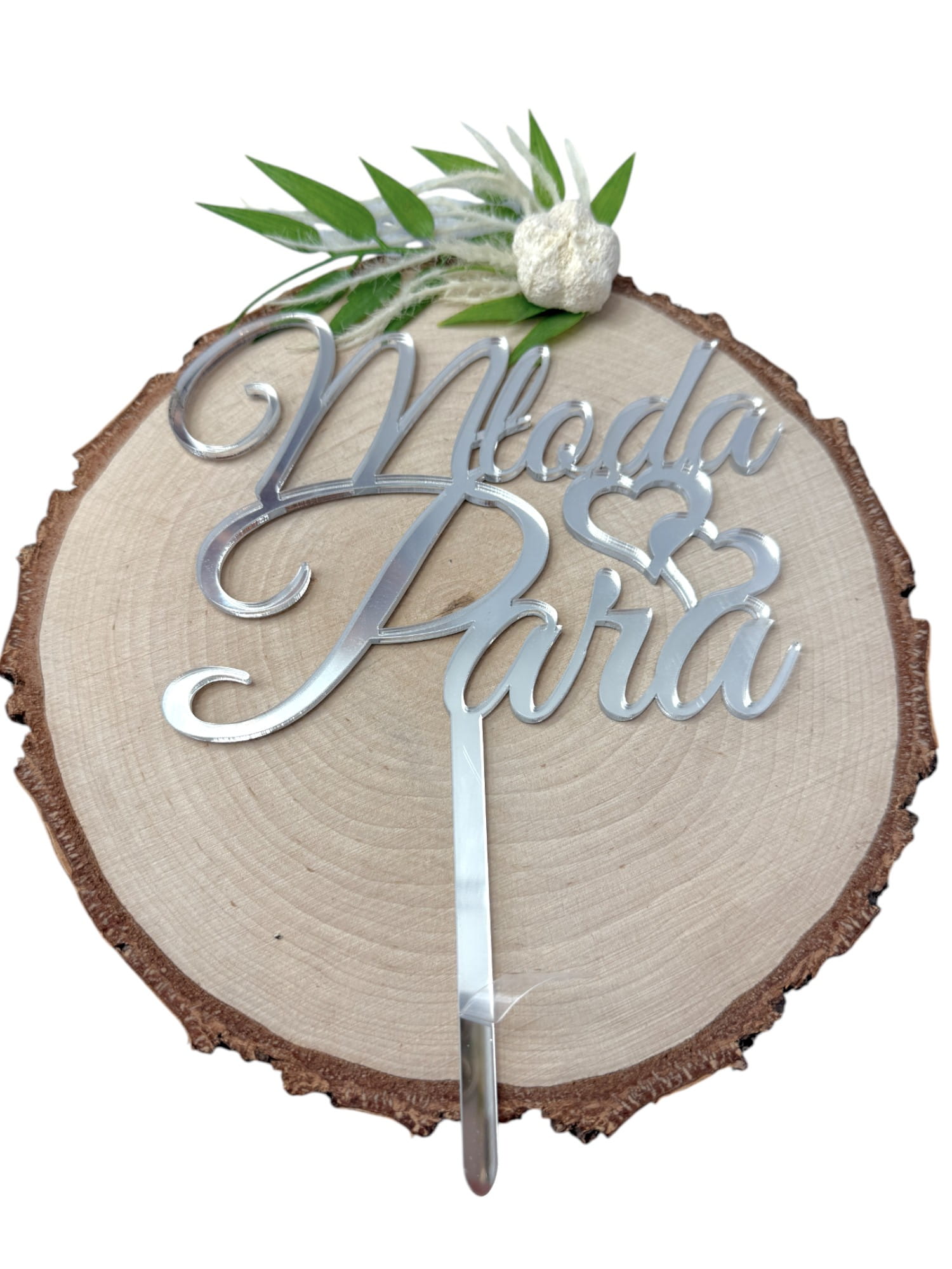 Elegancki topper z napisem „Młoda Para” to klasyczna i efektowna dekoracja tortu ślubnego, która podkreśli wyjątkowość Waszego dnia. Wykonany z trwałej i błyszczącej plexi lustrzanej lub czarnej plexi w połysku, idealnie wpisuje się w każdą stylistykę – od romantycznej po nowoczesną.