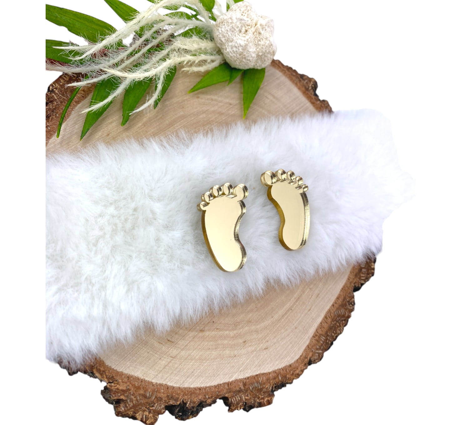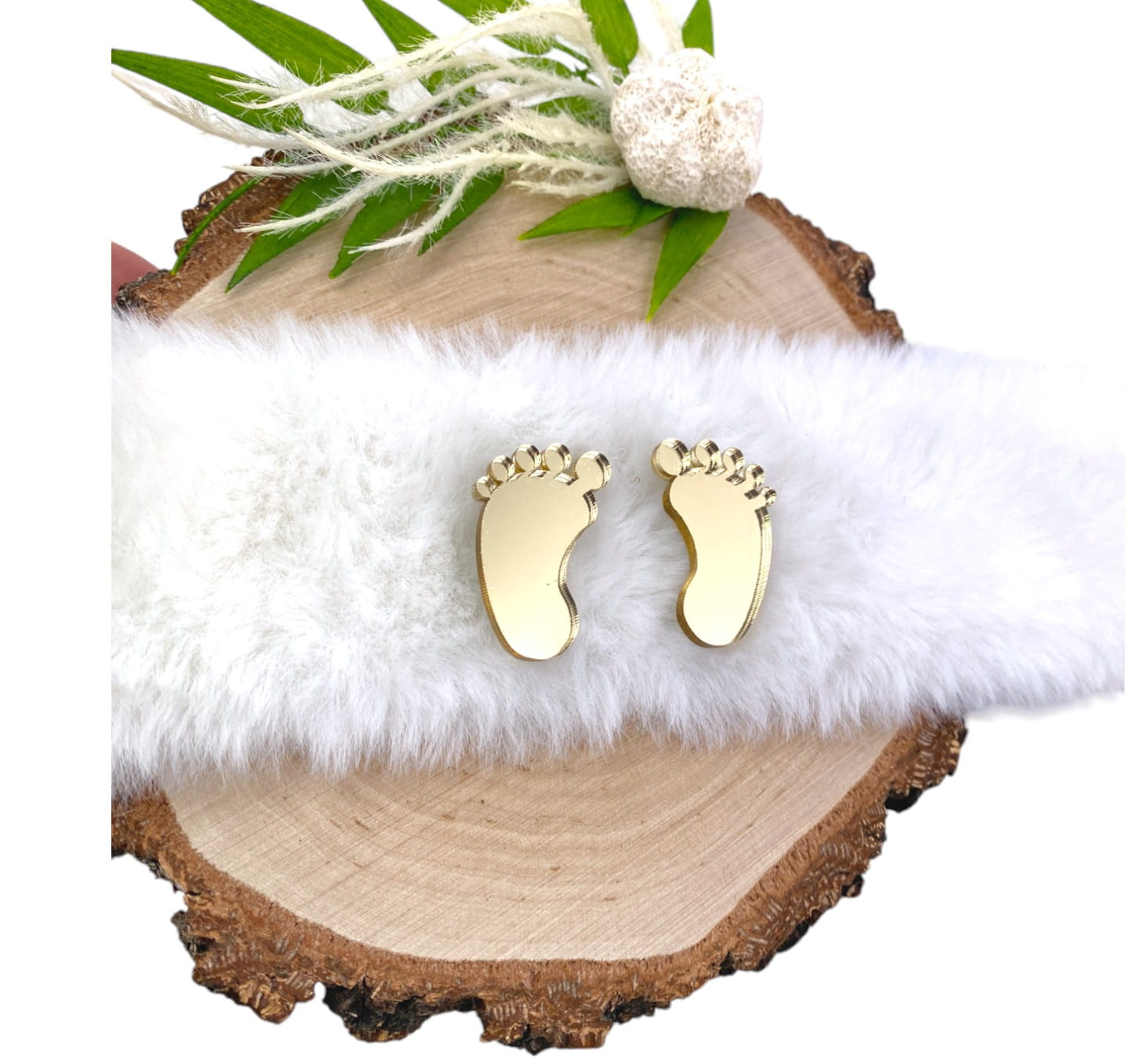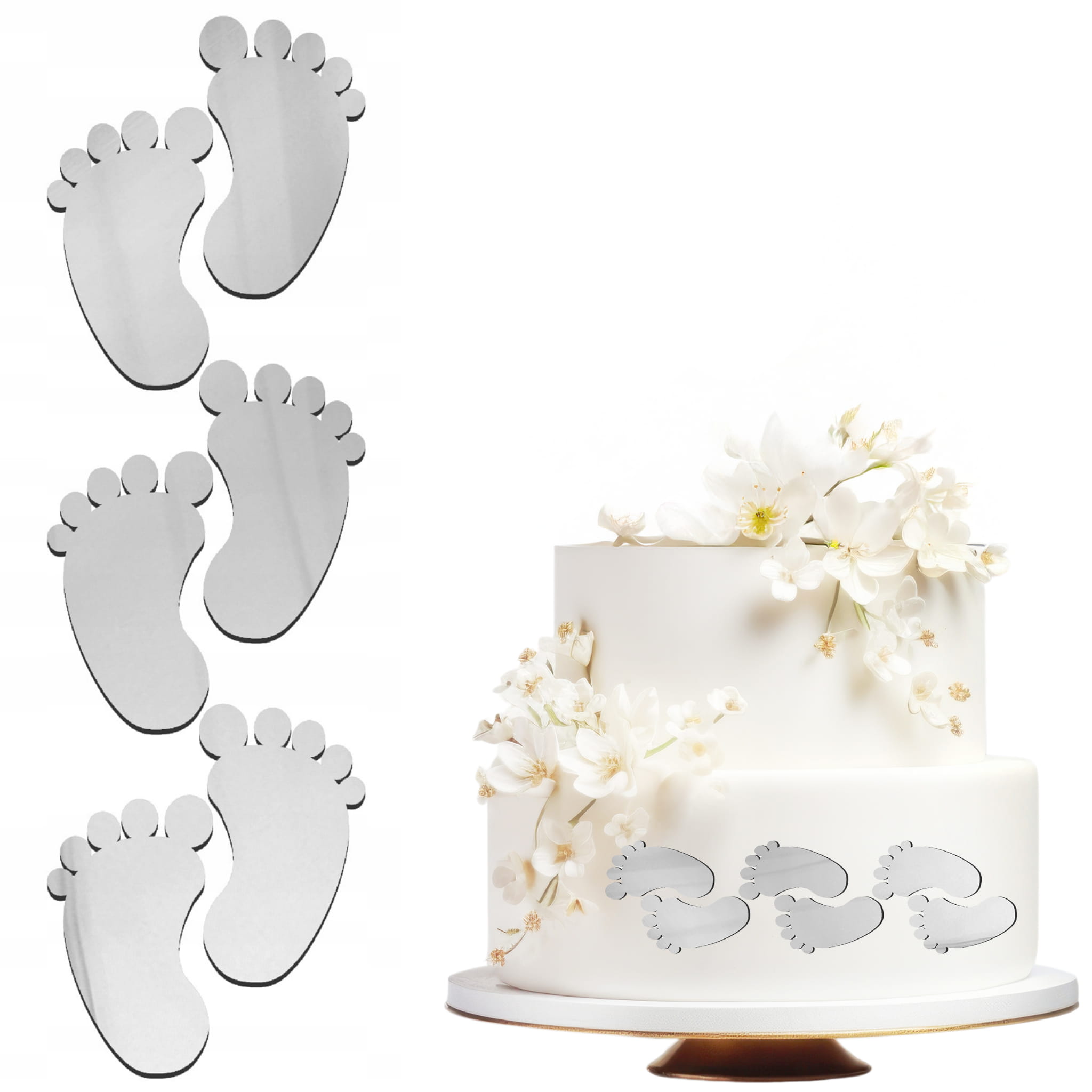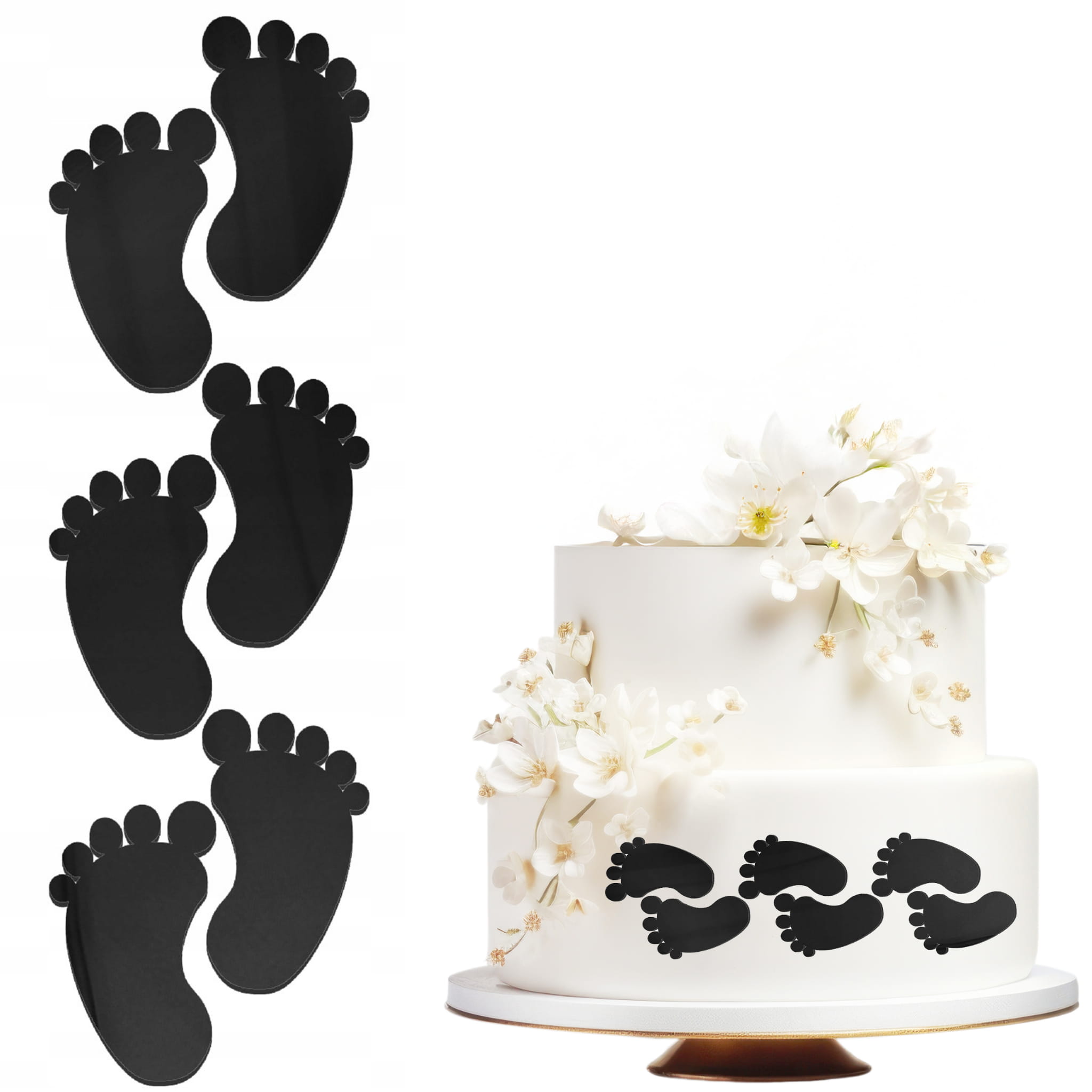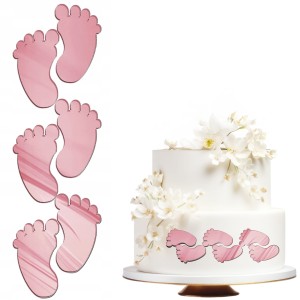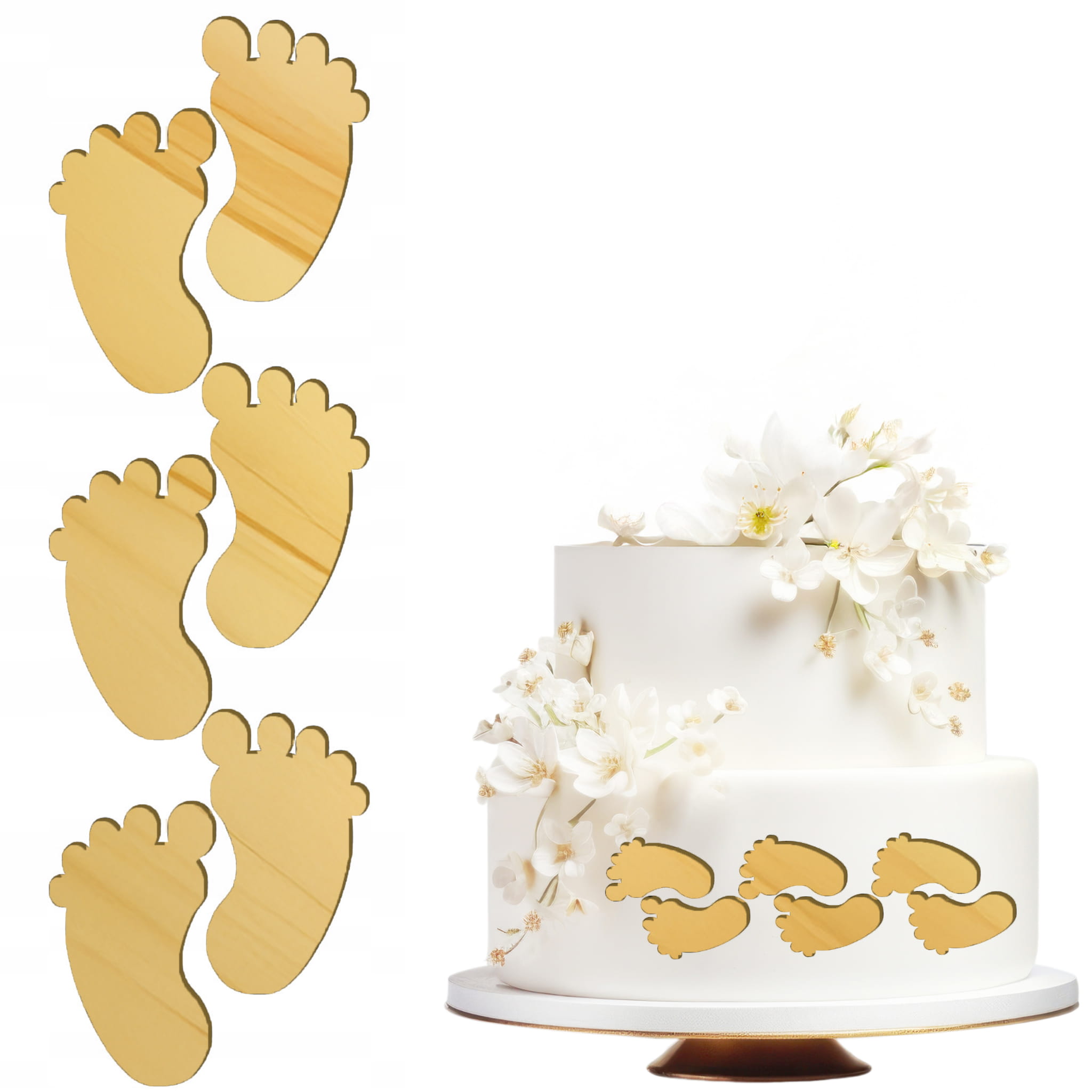 Topper na tort dziecięce stópki z plexi – złoto, srebro, różowe złoto lub czarny połysk. Idealny na Baby Shower, Chrzest Święty, Roczek i urodziny maluszka.
