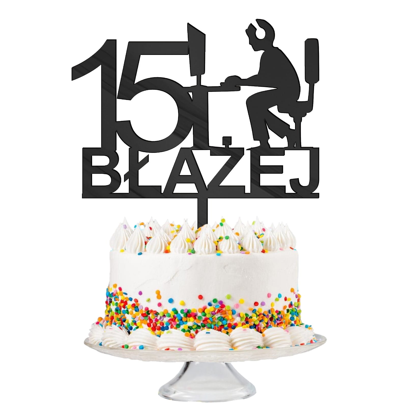 Personalizowany topper z motywem osoby siedzącej przed komputerem – idealna dekoracja tortu dla gracza, programisty lub fana nowych technologii. Wyjątkowy, oryginalny i dopasowany do okazji.