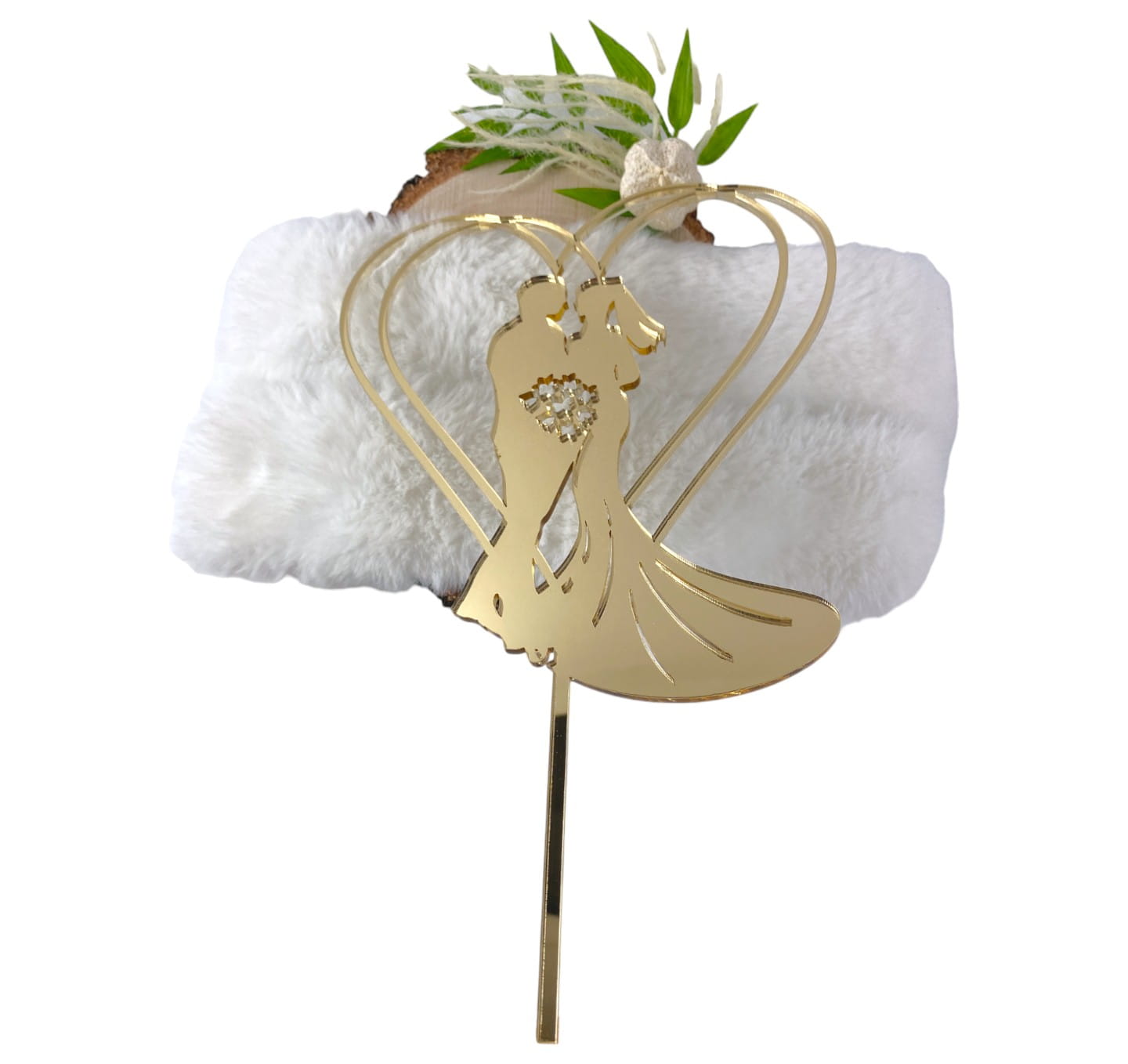 Dodaj odrobinę magii do tortu ślubnego dzięki subtelnej dekoracji przedstawiającej zakochaną Parę Młodą zamkniętą w sercu. To symbol miłości, który idealnie dopełni aranżację stołu weselnego i podkreśli wyjątkowość chwili. Topper wykonany jest z wysokiej jakości plexi, która mieni się światłem i nadaje całej kompozycji wyjątkowy charakter.