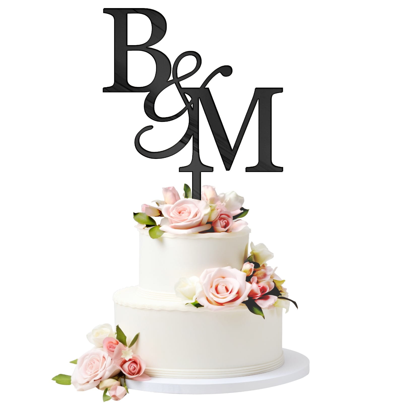 Elegancki topper na tort ślubny z personalizacją – inicjały, imię lub data. Wykonany z lustrzanej plexi. Dostępny w kolorach: złoty, srebrny, różowe złoto, czarny. Idealny na ślub, rocznicę lub zaręczyny!