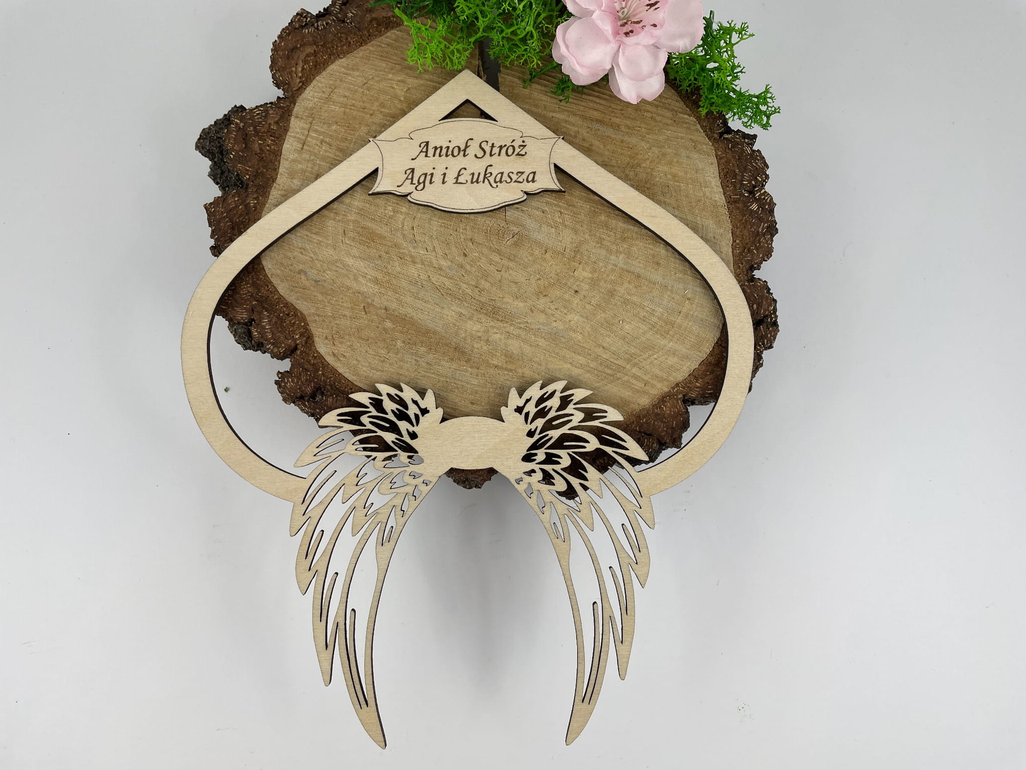 Obręcz serce z tabliczką i skrzydełkami DOWOLNY grawer