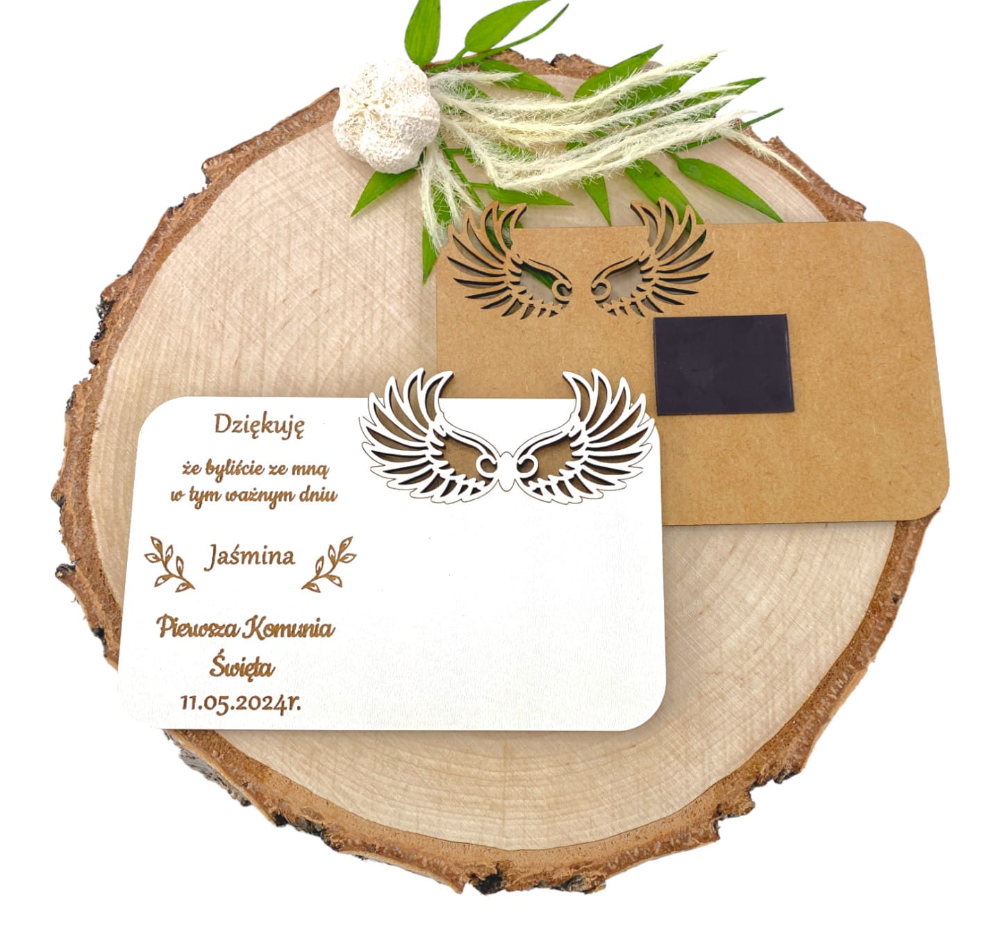 Podziękowanie chrzest komunia stojaczek magnes ANIOŁEK